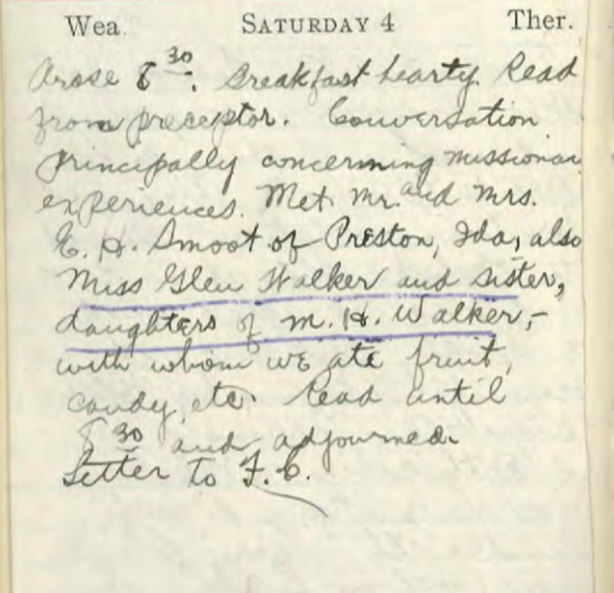 Aunt Florence life has been special from the very beginning as i mentioned the home she was born and raised in is where the Church office buildings now stand. the family later moved to where the Deseret gym is. these landmarks today destroy some important landmarks of yesterday. i think of people think of exciting honey moons. what i can't imagine a more exciting one that uncle Bert and aunt Florence had. Uncle Bert was given the assignment to go to San Diego and be the manager of the Utah exposition in the worlds fair. he took his bride and they spent their honey moon living in a little apartment just above the exposition where they took care of that responsibility and got to know each other.