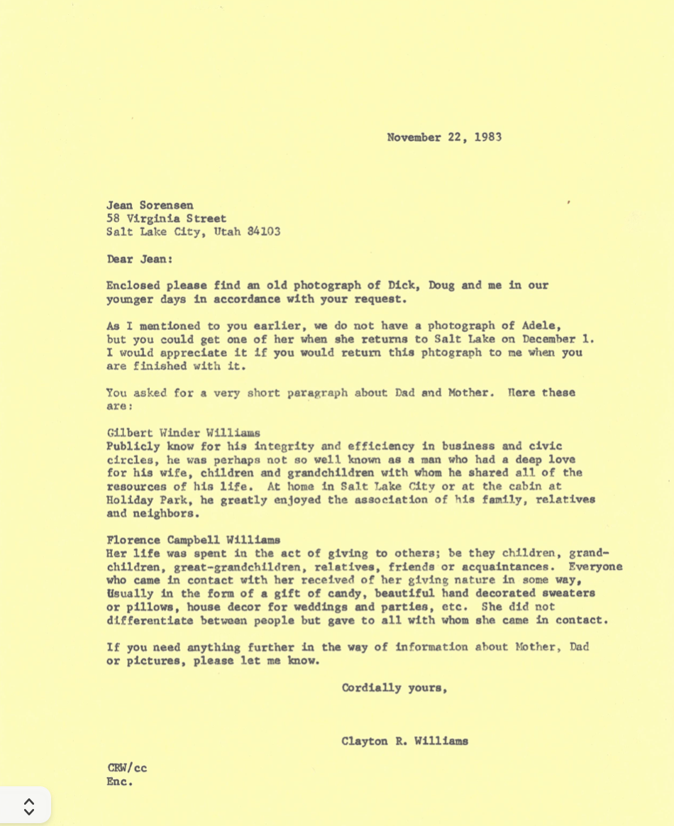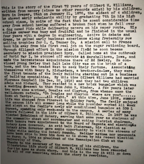 Transcript of CRW talking about Gilbert Winder Williams Family
