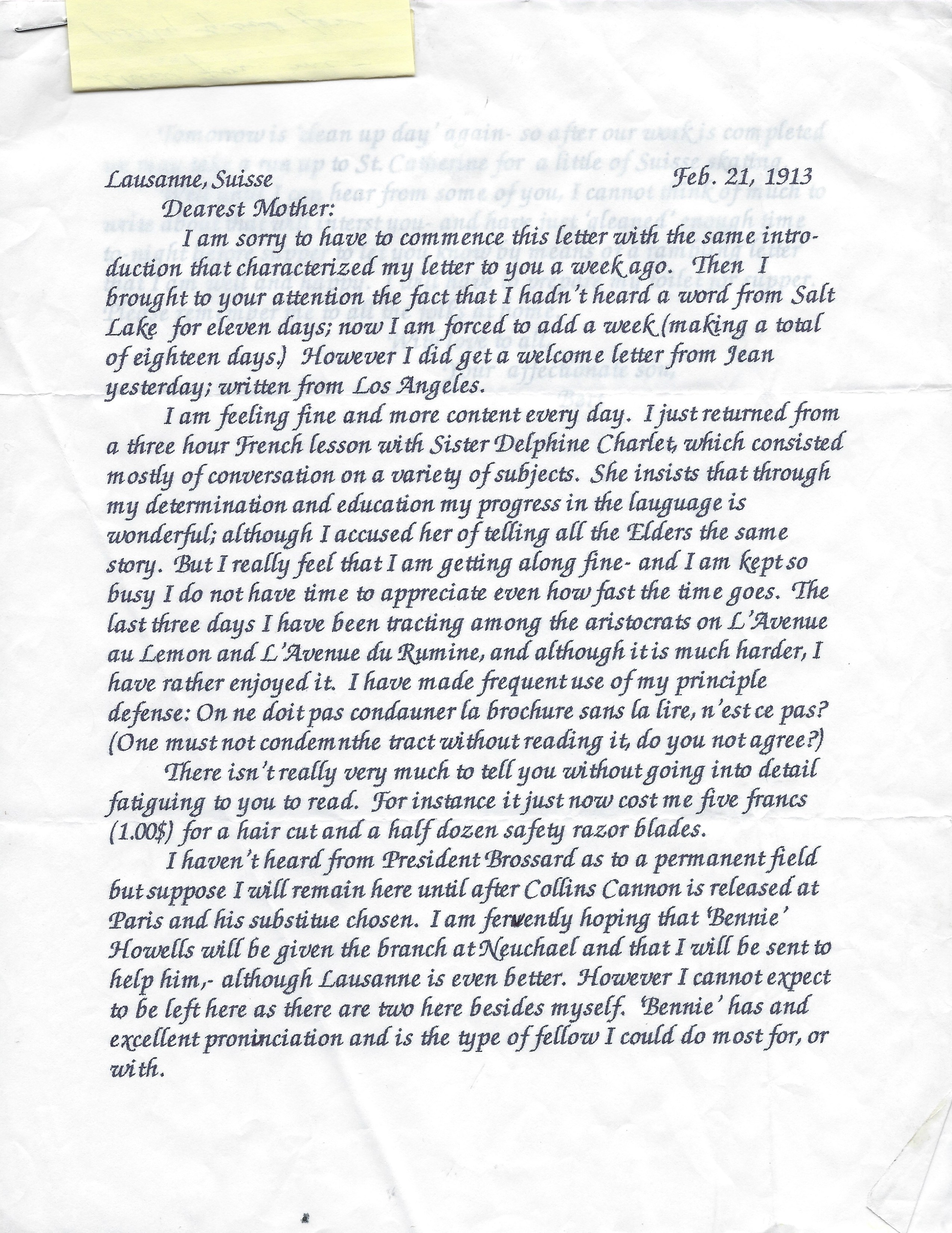 GWW Journal Mission, 1913: